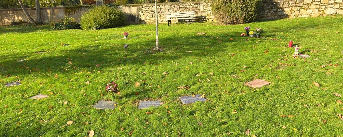 - Bei dieser Grabart handelt es sich um eine Urnenbeisetzung in einem pflegefreien Wiesengrab.
